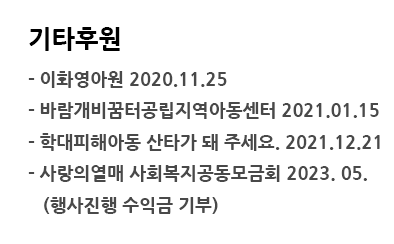기타후원 페이지 정보 작성자 좋은피알담당자 댓글 0건 조회 24회 작성일 25-03-17 09:53 목록 본문 기타후원 이전글학대피해아동 산타가되어주세요 25.03.17 다음글정기후원 25.03.17 댓글 0 댓글목록 등록된 댓글이 없습니다.